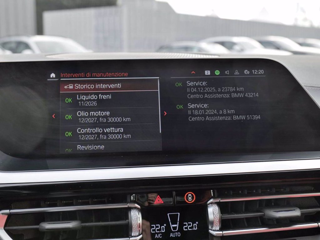 Vettura ufficiale italiana, unico proprietario, tagliandata come da foto allegate, con estensione di garanzia e pacchetto manutenzione incluso fino a gennaio 2029/100000 km, tenuta in condizioni eccellenti, come nuova. Colore Skyscraper Grey Metallic, interni in pelle Vernasa Magma rossa con impunture decorative, cambio automatico a 8 rapporti con paddle al volante, bullone antifurto, indicatore pressione pneumatici, deflettore frangivento, retrovisore interno autoanabbagliante, sistema di carico passante, isofix, allestimento portaoggetti, plancia in pelle Sensatec, sensori parcheggio anteriori e posteriori, clima automatico bizona, cruise control con funzione freno, pacchetto luci interne, active guard, radio digitale DAB, teleservices, chiamata di emergenza, connected drive services, Bmw connected package professional, Bmw live cockpit professional, volante sportivo M in pelle a 3 razze, sedili anteriori sportivi M, kit aerodinamico M Sport, shadow line esterna lucida, cerchi in lega da 19" st.799M bicolore, assetto sportivo adattivo M, capote antracite con riflessi argento, retrovisori interni/esterni autoanabbaglianti, regolazione elettrica sedili anteriori, modanatura alluminio Tetragon, fari Full Led adattivi, High Beam assistant, impianto hifi surround Harman/Kardon, volante con corona riscaldabile, comfort access system, supporto lombare elettrico sedili anteriori, sedili anteriori riscaldabili. Prezzo di listino € 80.000,00.